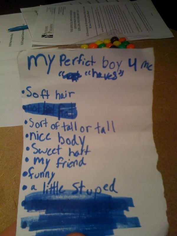 This is some little girl’s (I hope) list for a a perfect boyfriend. Aside from the “a little stuped” I’m with her and think that she may have even meant ‘a little’ as opposed to the ‘a lot’ that she knows. Boys will be boys sometimes, as we all know, and maybe they’re pulling her pigtails on the playground.