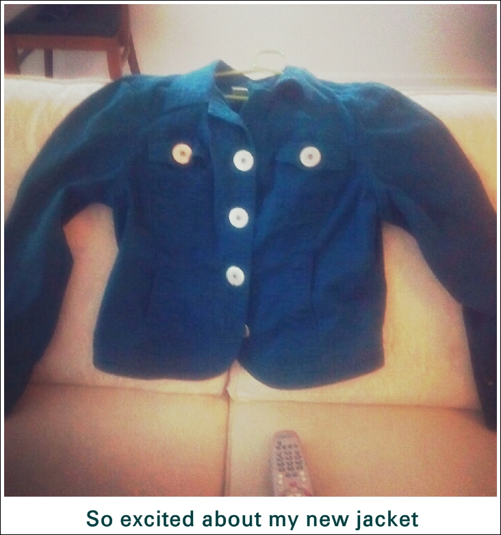 Unfortunately I didn’t find anything for the home. It was a bunch of crap. Actually, there wasn’t enough crap for a bunch, so it was just some crap. BUT not all was lost. I decided to wander into the clothes section and found the cutest jacket. All it needs is new buttons.
