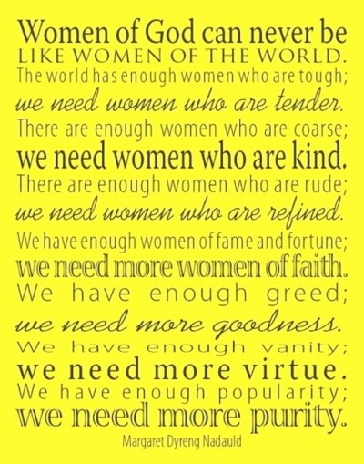 Let’s talk a little about women, or to be more specific “real women” or “good women.” I spend a lot of time browsing through the Quotes section of Pinterest. Occasionally I come across a quote or meme that will annoy me. Quite often they have to do with categorizing women using terms such as “a real woman” or “ a good woman,” the implication being that if you are not those things, you are somehow not “real” or “good.” I usually shake my head and then move on from them, but every once in a while, one will just make my blood boil and I’ll repin it with comments of outrage to my feminist board. Such was the case when I saw the image below extolling the virtues of being a “Women of God,” that is until someone questioned why I find it offensive. Having been a so-called woman of god for a large part of my life, I understand the bullshit that is implied, hell not even implied it’s right in your face that if you’re not of God, you’re somehow lacking. Just take a read…